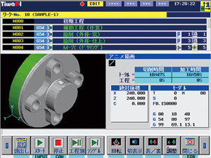 通過交互系統(tǒng)“輸入”便于操作者使用,無需具備G代碼知識就可創(chuàng)建程序??梢酝ㄟ^使用3D動畫和刀具路徑圖,模擬切削效果來完成程序的“檢查”。在“操作”中,加工主軸和工藝類型的順序被自動識別,以便使主軸控制和C軸回零達到最佳程度。